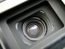 | To design a lens that can be fitted to the compact dimension of the XA body was one of the hardest problem of the XA development. Maitani insisted on a 35mm lens to be fitted into a body of 4cm thick. However, only a 31mm wide angle lens can be fitted into it by using the conventional design concept. Moreover, by shortening a Tessar type 35mm lens, the maximum shortening achieved is 1mm and not the required 4mm. The lens design team headed by Yoshisada Hayamizu finally came up with the idea of using a "Reverse Retrofocus Type" or "Telephoto Type" lens design. It was the first time that a "Reverse Retrofocus Type" 35mm wide angle lens was designed. (Normally, this type of lens design was used to make telephoto lens for slr cameras.) To provide focusing without extending the lens outward, an inner focusing mechanism was adopted. |